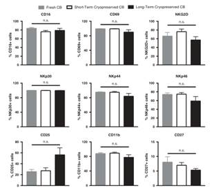 研究人员根据冻存时间长短,将脐带血分为三个组别:深低温冻存1-10年(长期组)、小于1年(短期组)与未冻存的脐带血。