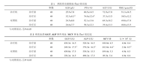 研究结果显示,治疗8周后,治疗组和对照组患者均未发现明显的不良反应及并发症,但两组的肝功能和血细胞计数变化存在显著性差异,治疗组的疗效明显优于对照组。