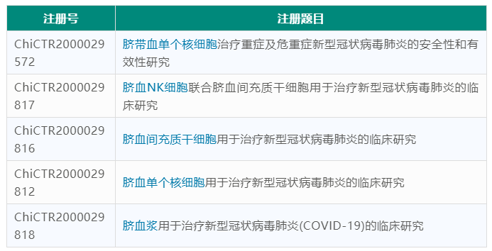 - 助力新冠肺炎治疗,国内已开展 5 项脐血临床研究