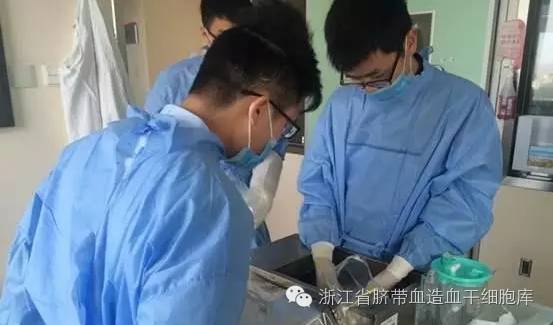 浙江省脐血库的工作人员正在复苏脐血
