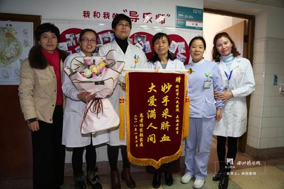 “男童航航(化名)的家人很激动,一定要叫我代表他们来道声感谢!”117日中午,浙江省脐血库工作人员余亚圣一行人来到衢州市人民医院,向当年采集这份脐带血的医生吴敏云赠送了一面锦旗,感谢她采集了高质量的脐带血,并对捐献脐带血的产妇周琦表示感谢。