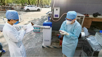 由于疫情防控要求,脐血库工作人员不能进入医院,所以此次脐血交接的地点也变得尤为特殊。经与院方协商,脐血库工作人员在医院门口将这份脐带血造血干细胞进行了水浴复温,随即与医生完成了信息核对与脐血的交接工作。