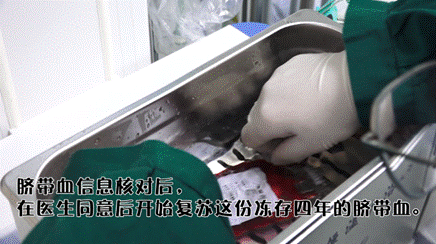 7月3日,脐血库技术支持人员将这份脐带血出库并送达千佛山医院儿童重症医学科,经过严格的细致的信息核对,确定脐带血无误后,根据医生的指示,技术支持人员完成了脐带血的复苏工作。