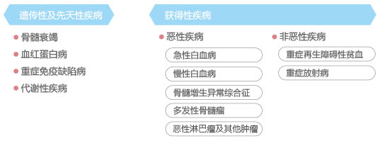2017年2月,原国家卫计委(现国家卫健委)颁发的《造血干细胞移植技术管理规范(2017版)》(国卫办医发〔2017〕7号)规定,脐带血临床应用适应症包括: