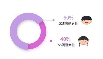 390 例中,男女构成分别为 235 和 155 例(60% 和 40%)。