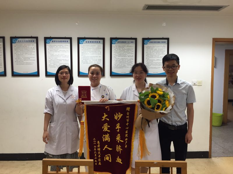 2016年7月9日,台州市中心医院妇产科内一个新生命降临,孩子的母亲陈女士早在怀孕阶段就与浙江省脐血库签订了脐血捐赠协议书,将孩子出生后的脐带血保留下来,捐献给社会,以帮助更多需要它的人。