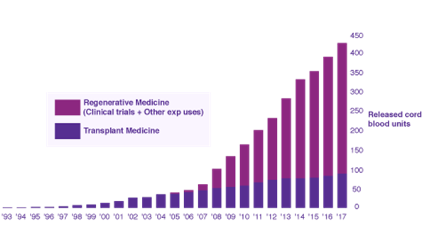 21世纪,我们进入细胞治疗时代,脐带血作为干细胞治疗的中坚力量,在拯救生命的征程上发挥越来越重要的作用。据不完全统计,截至目前,世界范围内脐带血移植的案例已超过50000例。尤其是近几年,美国、日本每年脐带血移植量均超过1000 例。