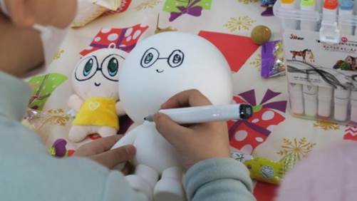 在活动开始之前,浙江省脐血库和阿里公益的工作人员们已将活动室装饰一新,整个房间充满了浓浓的新年气氛。志愿者们还将玩具和小零食分装成袋,戴上事前准备好的口罩,迎接患儿们的到来。