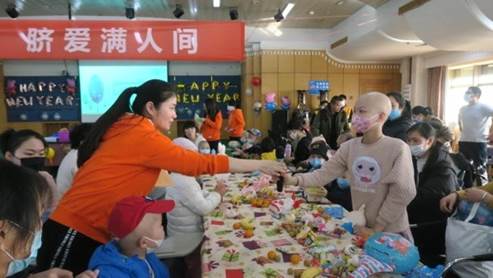 12月31日下午,省脐血库与阿里公益的工作人员带着浙江科技学院的大学生志愿者们又按约来到浙大儿院湖滨院区,举行了主题为“欢乐迎新年,脐爱满人间”的大型公益活动,与血液病小患儿们度过了愉快的下午。
