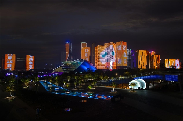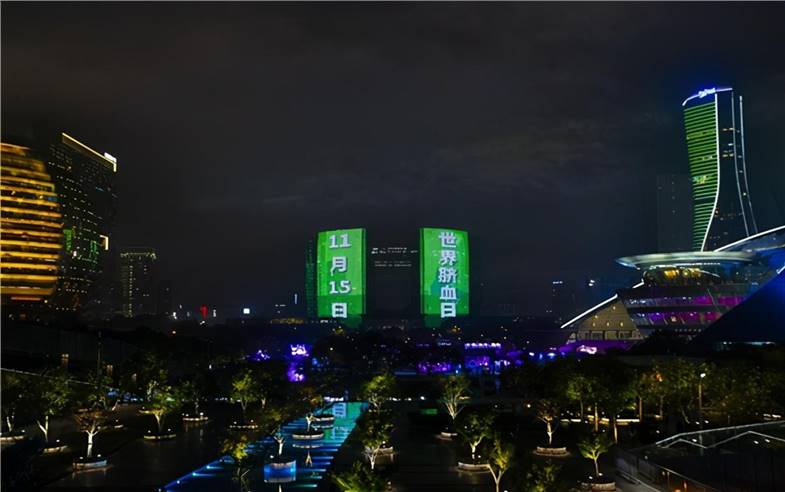 晚上,杭州市钱江新城的灯光秀也悄然为脐带血以及世界脐带血日亮灯,脐带血再次受到大家的高度关注。