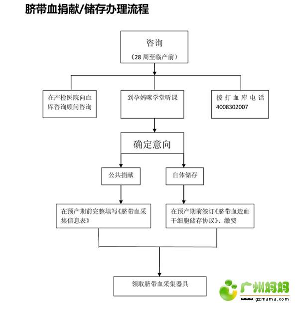 1.脐带血采集:产妇及其家属在入院后,通过三次电话通知脐带血库,并携带采血器具,交与医护人员,由经过广东省脐带血库培训并考试合格后获《脐带血采集资格证书》的医护人员进行采集。