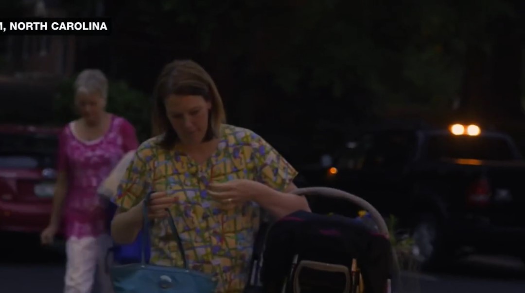 晚上 20:30 刚过,莎拉·马修斯带着小宝宝格蕾丝,和她的母亲一起走出了皮卡车。