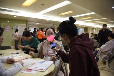记者采访正在办理储存手续的准妈妈