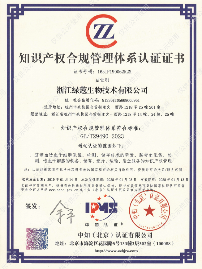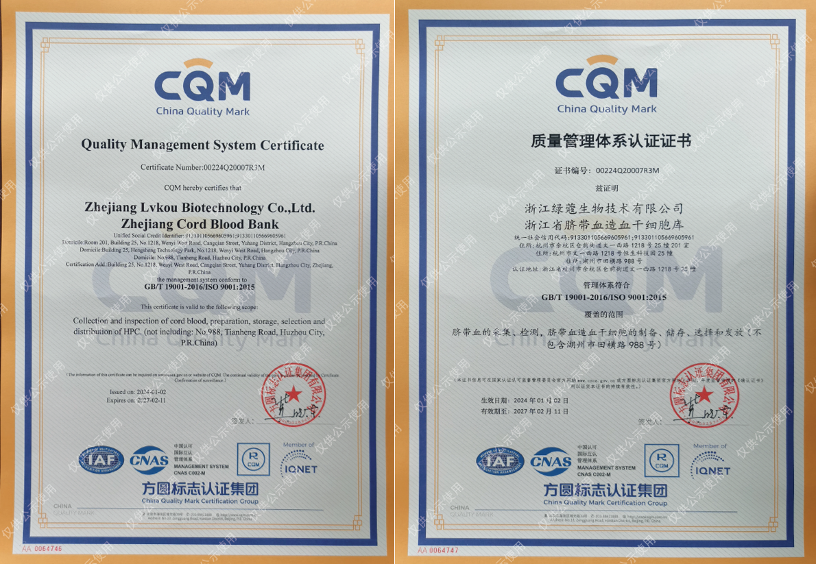 浙江省脐血库顺利通过了GB/T 19001-2016/ISO 9001:2015质量管理体系的认证审核并取得质量管理体系认证证书